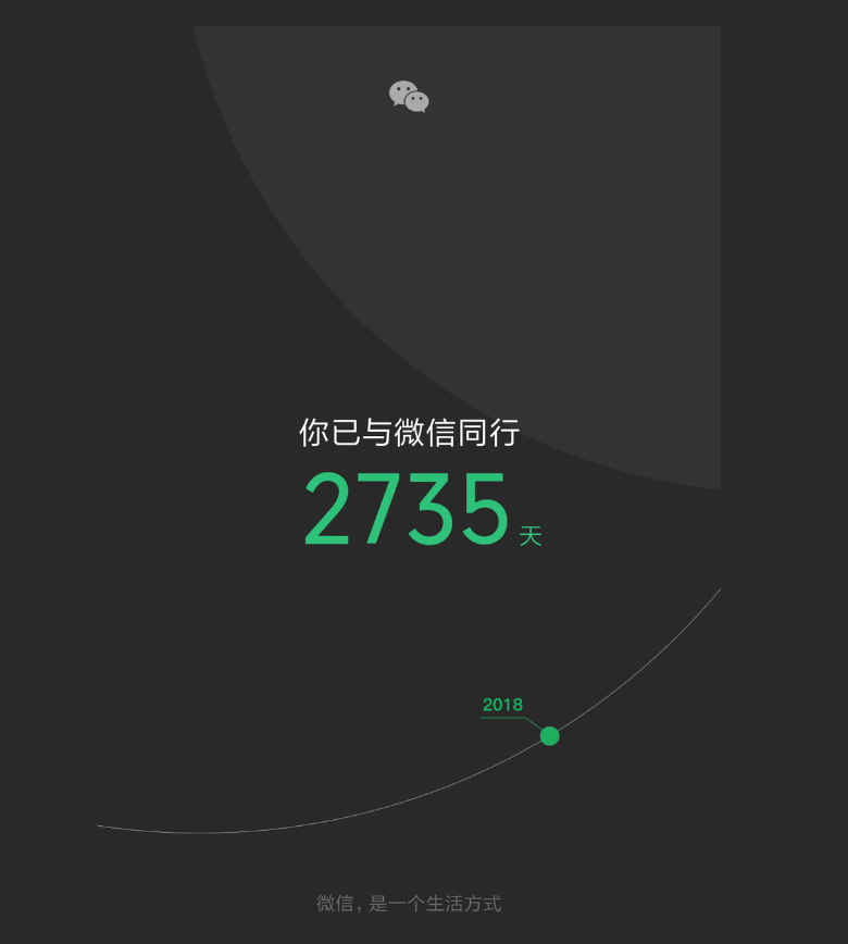 報告還給我們留了一個大彩蛋,提到“微信8年”你陪了微信多少天?日期只是數字,生活的點滴才是人生的歷程,在這微信8年之中,或許大家都經歷了無數的悲歡離合,但大家卻仍然陽光的面對生活。