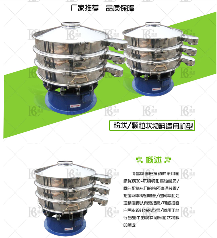 振動(dòng)篩,顧名思義振動(dòng)篩分設(shè)備,是一款可以加裝一到四層篩網(wǎng)的篩分設(shè)備。對(duì)同一物料篩分出2-3種不同標(biāo)準(zhǔn)。適用于各種高精密粒、粉、漿液等物料的篩分與過濾。一般使用振動(dòng)篩:檢查篩網(wǎng)是否有破損,電機(jī)有無保養(yǎng),如果篩面上的物料多時(shí),應(yīng)調(diào)整電機(jī)配重塊,使篩分時(shí)間延長,篩分精細(xì)。